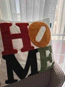 Homiya- HOME Yazılı Renkli Panç Kırlent (NK 2671) 47x47cm